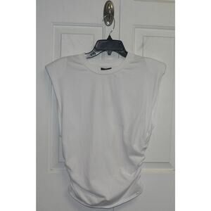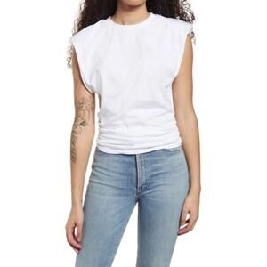 AFRM Women's Billie Side Ruched Shoulder Pad Crop Tank in White Small MSRP $48