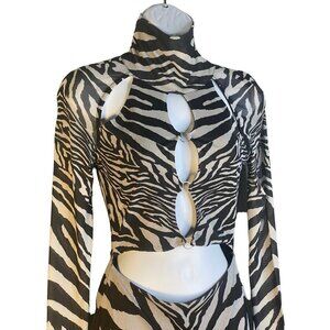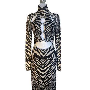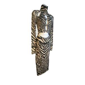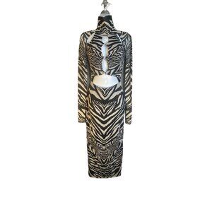 AFRM Womens Brie Black and White Cutout Zebra Mesh Midi Dress Size XS