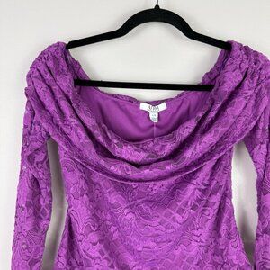 AFRM Women's Purple Floral Ruched Off the Shoulder Lace Bodysuit Size Large NWT