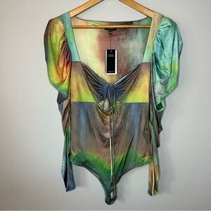 AFRM X Revolve Coppelia Long Sleeve Radical Multi Watercolor Bodysuit Sz M NWT