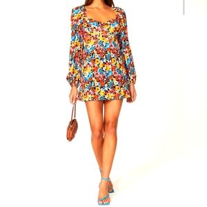AFRM X Revolve Monna Sike Cutout Mini Dress L Multi Wildflower