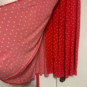 AFRM polka pink white dot midi rayon blend wrap skirt Size XS