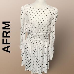 AFRM Lightweight Polka Dot Dress, Bishop Sleeves, Open Back Design, Size M