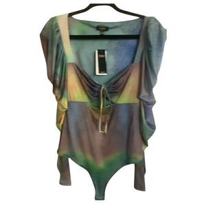AFRM Womens Multicolor Space Dye Mesh Cutout Bodysuit. Size Small. Armpit to Armpit measurements are 16". Poly/Spandex. Machine Wash. this bodysuit is newer tags. It’s so sexy and it’ll get your attention when you go out to a bar club and go dance.