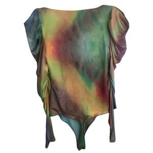 AFRM Multicolor Space Dye Mesh Sleeve Cutout Bodysuit Size Small NWT