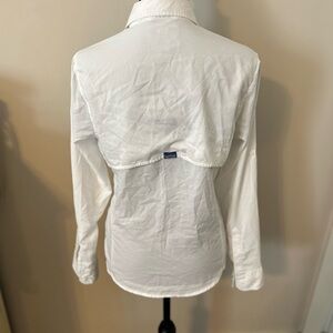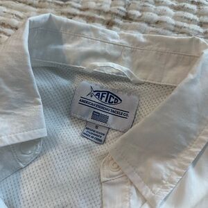 Thin airy wet dri white high low long sleeve fishing shirt by AFTCO size S (pit to pit 17”, length 25”, sleeve 19”)
