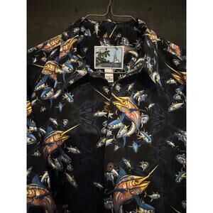Brand New without Tags AFTCO Bluewater swordfish print buttondown men's shirt size XL.