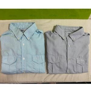 AFTCO Light Blue Plaid Short Sleeve Button-Up Shirt Size Large 100% Polyester