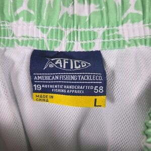 AFTCO Swim Trunks Mesh Lined Green Marlins Size Lg Drawstring Pockets