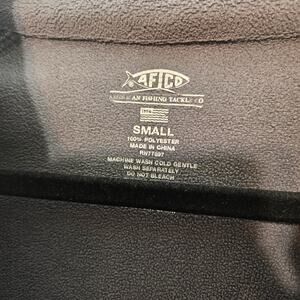 Size Small. AFTCO Vista Preformance fishing pullover. Grey. 1/4 zip. one pocket on front. long sleeved. Chest 20, length 26. Condition good used.