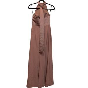 AFTER SIX Halter Neck Charmeuse & Crepe Gown Size 4 bridesmaid Flawed*