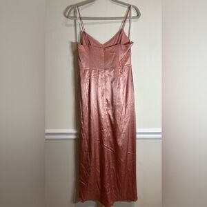 AFTER SIX SATIN FAUX WRAP MIDI DRESS WITH DRAPED TULIP SKIRT Size 8 Desert Rose