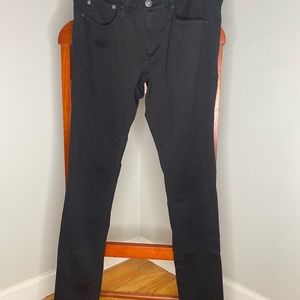 Black ankle, legging-style pant featuring a super skinny fit that contours the body from hip to hem, and a modern cropped ankle length with clean trims. Like new condition. Size 29R