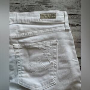 The classic white wash is perfect for creating a variety of looks, from casual daytime outfits to chic evening ensembles. The five-pocket design provides ample storage for your essentials, while the signature AG detailing adds a touch of luxury.