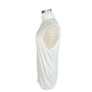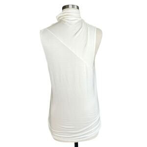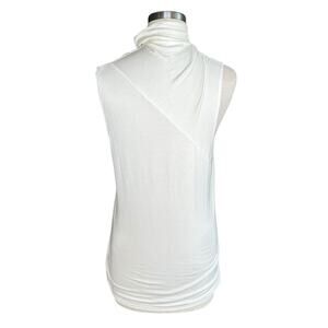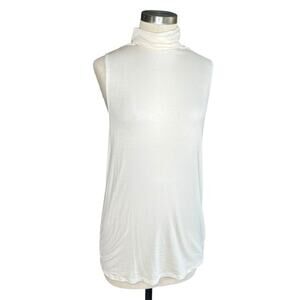 Women's cream white ribbed knit sleeveless turtleneck tank top from AG Adriano Goldschmied in size XL. New with tags, but minor makeup mark on the interior of the neckline from being tried on.