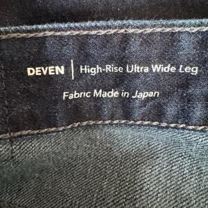 Details: The Deven high-rise ultra wide-leg jean crafted from comfort stretch denim in dark wash. Designed to move with you, this statement silhouette. Button & zipper closure and 5 pockets.