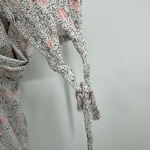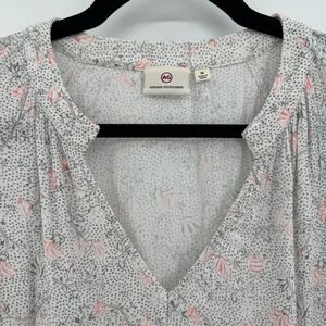 AG ADRIANO GOLDSCHMIED Gray Pink Floral Long Sleeve Tassel Blouse Top Size M