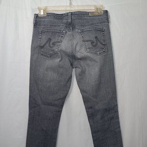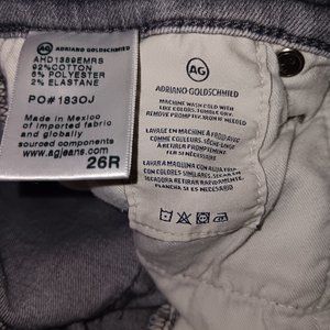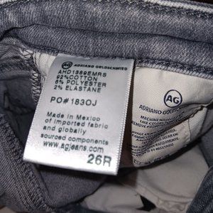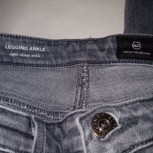 Size 26R Women's AG ADRIANO GOLDSCHMIED Gray color Super Skinny Ankle LEGGINGS Jeans with Functional pockets (pre owned condition)