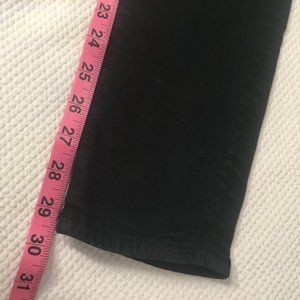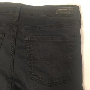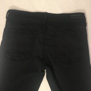 AG Prima mid-rise cigarette black jean size 26R. The cigarette jean is the quintessential slim straight fit you see in classic films. It fits slim across the hips and straight through the legs. The fabric content is 55% cotton, 42% lyocell, 3% polyurethane. The inseam is approximately 29.5". There are no signs of stretching and this jean is in great condition with minimal wear. Please see photos.