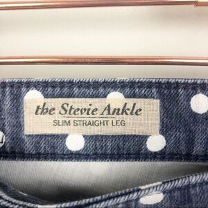 Adorable blue skinny jeans with white polka dots by AG! These are the Stevie Ankle Jeans - Slim Straight leg. Great preowned condition. Size 28 Regular.
