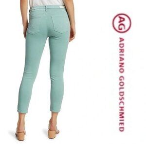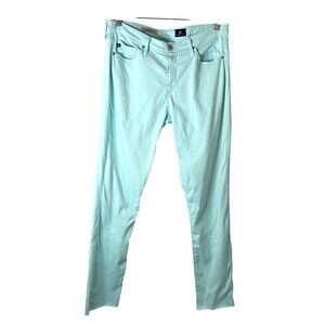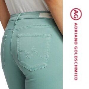 AG Adriana Goldshmied Prima Sateen Mid-Rise Cigarette Pants Sz 30R in Mint Jade
