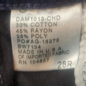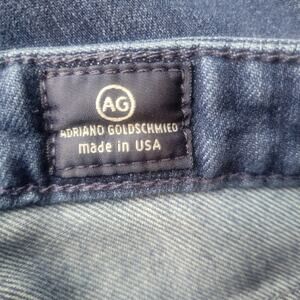 AG Adriano Goldschmeid "The Angel" Boot Cut Jean. Has been nicely hemmed o 28" inseam. Patch on back waistband torn as pictured, otherwise good preowned condition. Size 28.