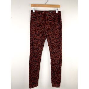 Farrah Ankle Skinny Pant for women features an exclusive hand-brushed design inspired by vintage leopard print, updated in our warm crimson red for season. Cut with flattering high rise waist for a sleek silhouette and cropped length at ankle with a modern raw hem. This women’s jean is designed in an extra-plush, baby wale corduroy with a velvety finish and added stretch.
