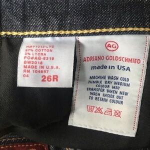 Adriano Goldschmeid boot denim jeans with tonal stitching. Distressed hem with tonal stitching & whiskering by design.