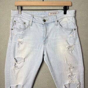 AG jeans, Adriano Goldschmied denim, The Ex-Boyfriend jeans, slouchy slim jeans, distressed jeans, relaxed fit denim, women’s size 28R, light wash jeans, casual cool jeans, vintage inspired denim, everyday jeans, soft denim, mid-rise jeans, AG-ED jeans