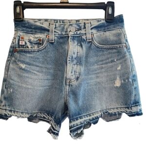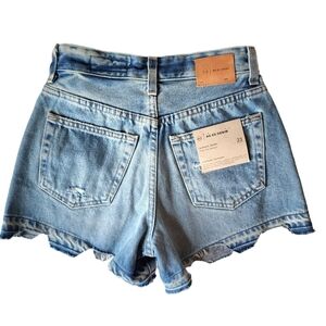 NWT. Button fly and a summery light denim wash. Fitted silhouette through the hips with a straight fit down the thigh, finished by raw, angled hems. Alexxis Short is designed in 11.75 oz. Legion Denim that's made from 100% cotton and heavily faded, leaving traces of darker indigo at the seams. Hazy whiskering and hits of destruction add to the aged character.