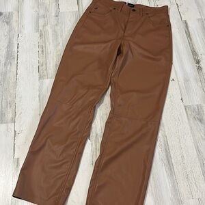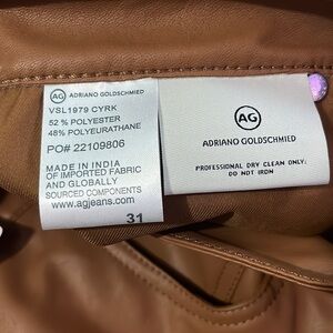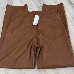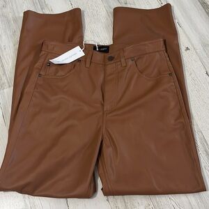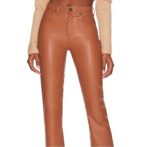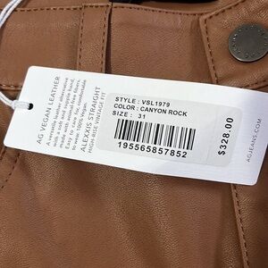 AG Adriano Goldschmied Alexxis Straight High- Rise Vintage Fit Leather Pants size 31. NWT Canyon Rock Color