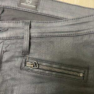 AG Adriano Goldschmied Black Coated Moto Skinny Jeans, gently used, smoke-free home.