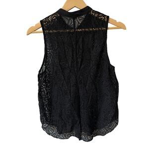 AG Adriano Goldschmied Black Lace Preppy Minimalist Blouse Black Medium