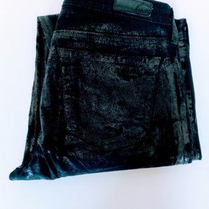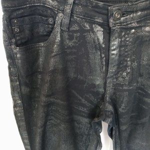 Adriano Goldschmied Black 'Shiny' Super Skinny Fit. The material seems to be like a snakeskin print that's shiny. Maybe there's a name for it but I don't know what it would be called. 55% cotton, 42% TENCIL. In good condition, size 30R.