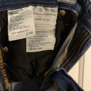 Soft, comfortable Adriano Goldshmied dark blue, skinny jeans, size 27R. My weight gain over the pandemic could mean your gain of my used jeans! Small worn spot on the knee as pictured. 29% cotton, 69% rayon, 2% polyurethane. DMS 1288-DLT