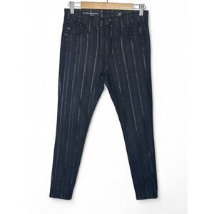 AG Adriano Goldschmied Farrah Skinny Ankle Jeans Navy Black Metallic Stripe 27R