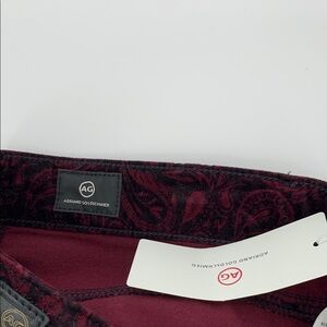 AG Adriano Goldschmied Farrah Skinny velvet jeans in burgundy Paisley print - New with Tags