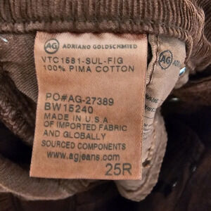 AG Adriano Goldschmied Fig Pima Cotton Corduroy Pants Women's Size 25 NWT