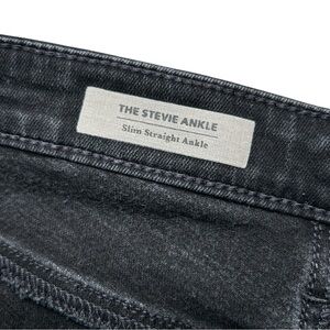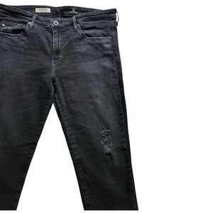 Experience the refined elegance of Ag Adriano Goldschmied's straight leg pants in a versatile black/gray shade. These pants boast a subtle worn texture and a seamless monochromatic design, ideal for a chic and timeless appearance. Comfortable and soft feel, from a smoke-free home. Good condition, no tears (aside from the distressed look how it came).
