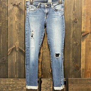 AG Adriano Goldschmied Jeans 27 Ankle Crop Cuffed Distressed Boho Mid Rise