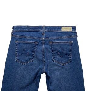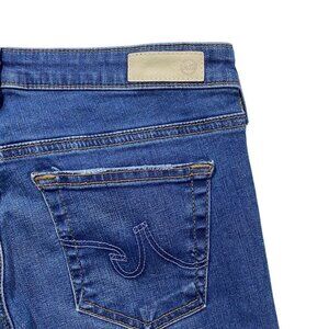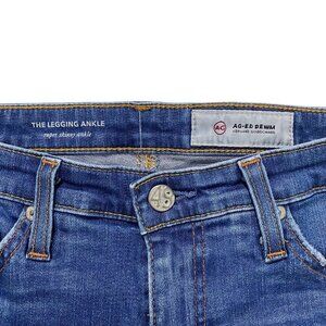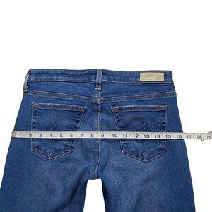 AG Adriano Goldschmied Women’s The Legging Ankle Super Skinny Ankle Medium Wash Ripped Distressed Destroyed Stretch Denim Mid-Rise (8”) Super Skinny Leg Jeans Size 27R (30” Waist by My Measurement) with an Inseam of 28”. These jeans are preowned and in very good condition.