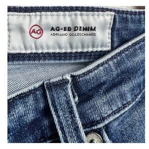 Elevate your denim game with these AG Adriano Goldschmied jeans in a trendy distressed style. The super skinny fit and low-rise waist create a flattering silhouette, while the 5-pocket design and logo accents add a touch of edge. Made with a blend of polyester, lyocell, cotton, and elastane, these jeans offer both comfort and stretch. The medium fabric wash and classic blue color make them versatile for any occasion. Zip closure adds convenience. Machine washable for easy care. Inseam measures 29 inches. Model name is AG The Legging Ankle.