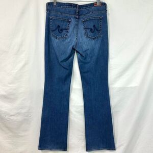 AG adriano goldschmied the jessie curvy boot fit blue denim low rise bootcut flare jeans, size 30R