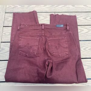 AG Adriano Goldschmied Kingsley high rise crop boot raw hem purple size 29