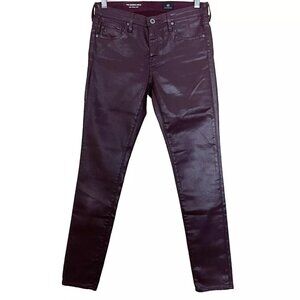 AG Adriano Goldschmied Maroon Coated Super Skinny Ankle Legging Jeans Women's 26