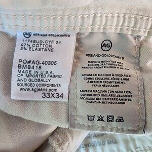 AG Adriano Goldschmied Mens 33X34 Pants The Graduate Tailored Leg SUD Pants Jeans Ivory