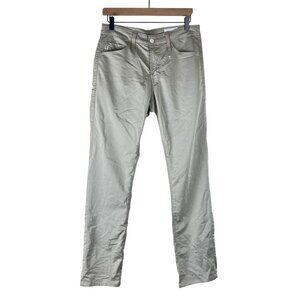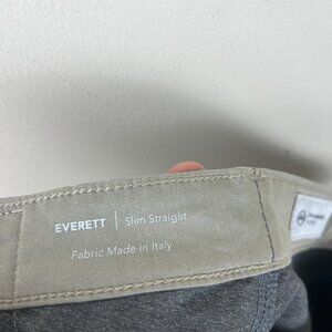 AG Adriano Goldschmied Mens Slim Straight Everett Commuter Pants. Taupe color called dry dust. Everett commuter performance sateen pants with active stretch. Mid rise. Cotton, polyester, elastane blend. Size 29x32. Retail: $215. (837)