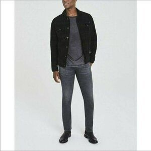 men's jeans, modern slim, black wash, AG jeans, Adriano Goldschmied, casual style, everyday denim, men's fashion, stylish jeans, machine washable, made in Mexico, comfortable men's wear, cotton elastane blend