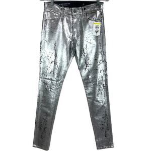 AG Adriano Goldschmied NWT The Farrah Skinny Ankle Coated Silver Denim Size 26R