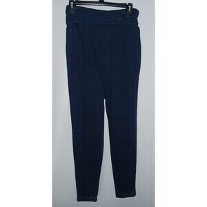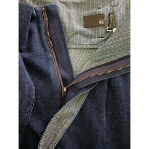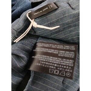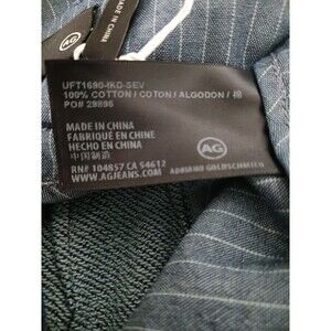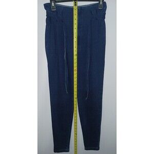 Description: AG Adriano Goldschmied Pentra Paperbag Pants in solid blue, size 24. Made from soft cotton, high-rise (over 10.5 inches), pleated-front pants feature a zip and tie closure, tapered leg, pinstripe lining inside, and belted waist. Machine washable. MPN: UFT1690-IKD-SEV. Paper bag waist, dark blue trousers, fabric belt pants. Office wear, Casual chic, Business casual, Sophisticated look, Parisian style, Versatile pants.